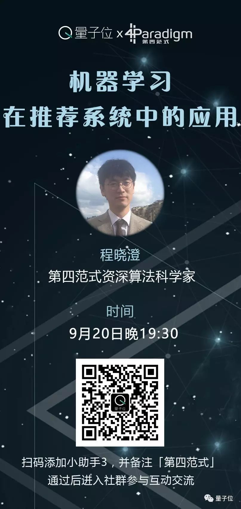 关注“量子位”微信公众号QbitAI,后台回复“第四范式”,获取直播地址。