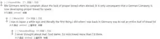-我们德国人出了国肯定要抱怨没有合胃口的面包吃,德国公司想开发太空面包,再正常不过了。