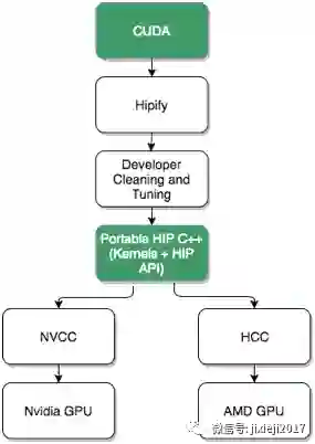 为了进一步缩小差距,ROCm 项目创建了一个名为HIP的CUDA移植工具(让我们忽略缩写代表的意思)。HIP提供了扫描CUDA源代码并将其转换为相应的HIP源代码的工具。HIP源代码看起来类似于CUDA代码,但编译的HIP代码可以支持基于CUDA和AMD的GPU设备。