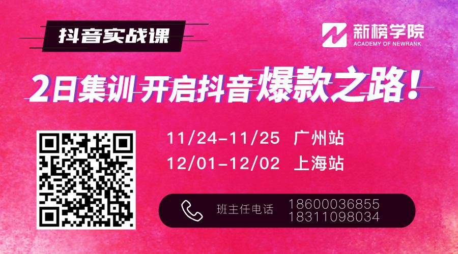 10月底举办的抖音实战课,收获了诸多学员的好评,应学员的强烈要求,抖音课将增设广州站,上海站!