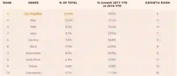 在刚出炉的BuzzAngle《2017美国年中音乐消费市场报告》中,Hip-Hop单曲和专辑的销量都是第一,已然成为最受美国民众欢迎的音乐类型。