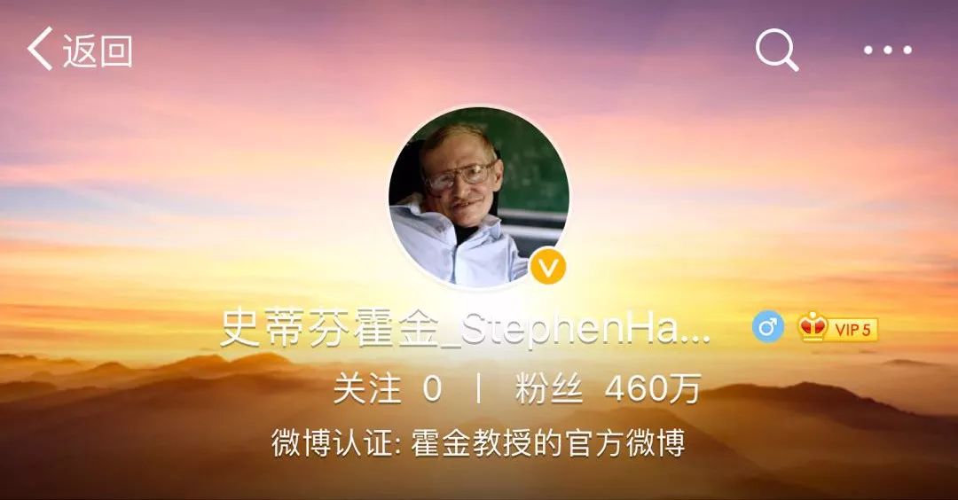 2016年4月,霍金开通了新浪微博,现已拥有450多万粉丝。