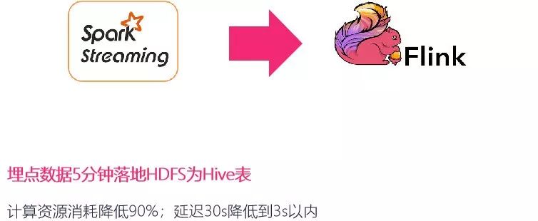 在使用Flink里带的Bucket Sink模式,只需要十分之一的资源就达到了原来Spark Streaming就能达到相应的吞吐量,并且延迟也大幅度的降低。