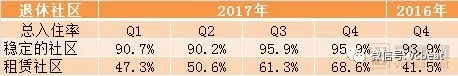 截至2017年12月31日,三个稳定社区的入住率从2016年末的93.9%提高至95.9%,2017年初出现下滑的原因是冬季人员的流失率较高。五个租赁社区的入住率截止到2017年12月31日,从2016年末的41.5%提高至68.6%。