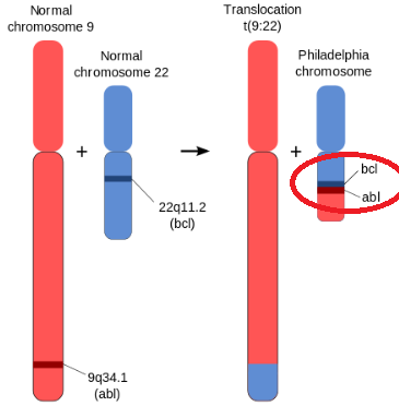 这个融合基因会导致ABL所拥有的酪氨酸蛋白激酶过度活化,从而引起细胞失控性增殖。