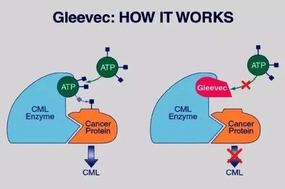 它之所以能成功,除了科学家的努力以外,还在于慢粒白血病的特殊。它只由染色体易位相关的单一异常蛋白引起,所以科学家能够将所有的精力集中在单一的目标上。