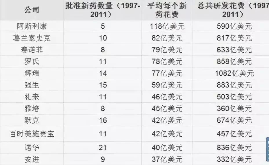 如果没有资本在背后支撑,整个流程也不可能顺利完成。而从1997年至2011年间,诺华的总研发花费就达836亿美元。其中只有21种新药获批,平均每个新药花费为40亿美元。
