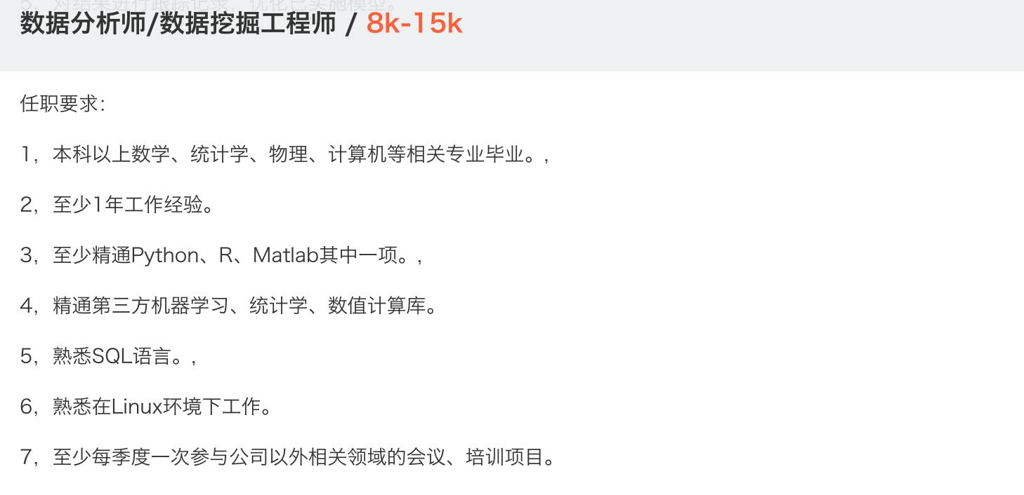 我们从拉钩上找了一些最具有代表性的数据分析师职位信息,来看看薪资不菲的数据分析师需要哪些技能。