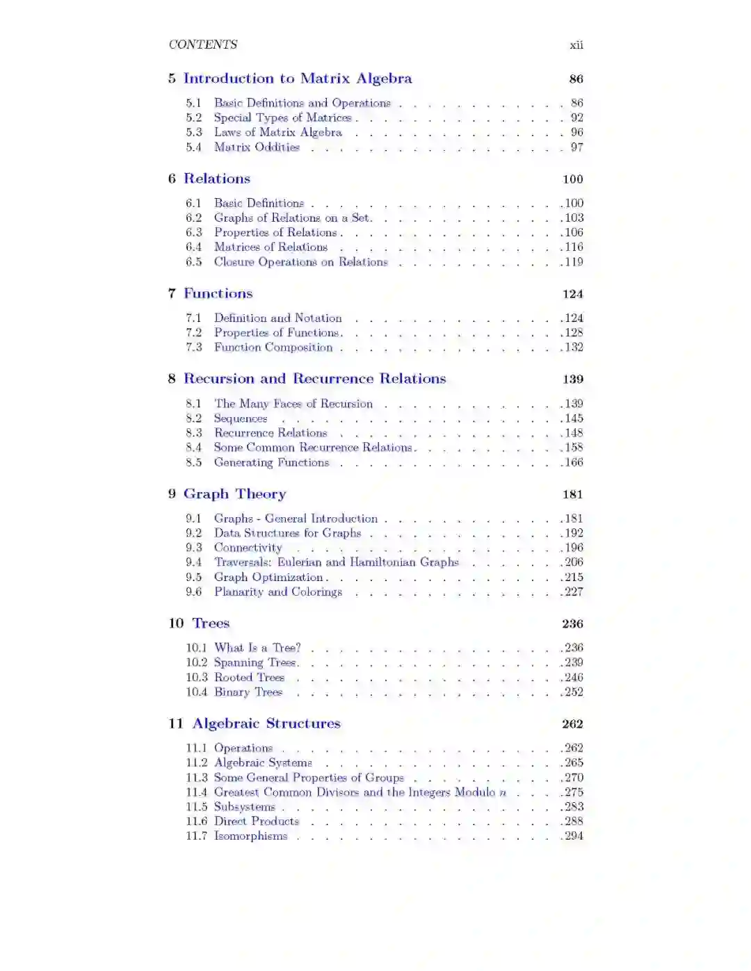 应用离散结构,是一个两个学期的本科文本在离散数学,侧重于结构性质的数学对象。这些包括矩阵、函数、图、树、格和代数结构。所讨论的代数结构是单体、群、环、场和向量空间。网站:http://discretemath.org应用离散结构已经被美国数学研究所批准作为其开放教科书计划的一部分。更多关于开放教科书的信息,请访问http://www.aimath.org/textbooks/。这个版本使用Mathbook XML (https://mathbook.pugetsound.edu/)创建。Al Doerr是马萨诸塞大学洛厄尔分校数学科学荣誉教授。他的兴趣包括抽象代数和离散数学。Ken levasserur是马萨诸塞大学洛厄尔分校数学科学教授。他的兴趣包括离散数学和抽象代数,以及它们在计算机代数系统中的实现。