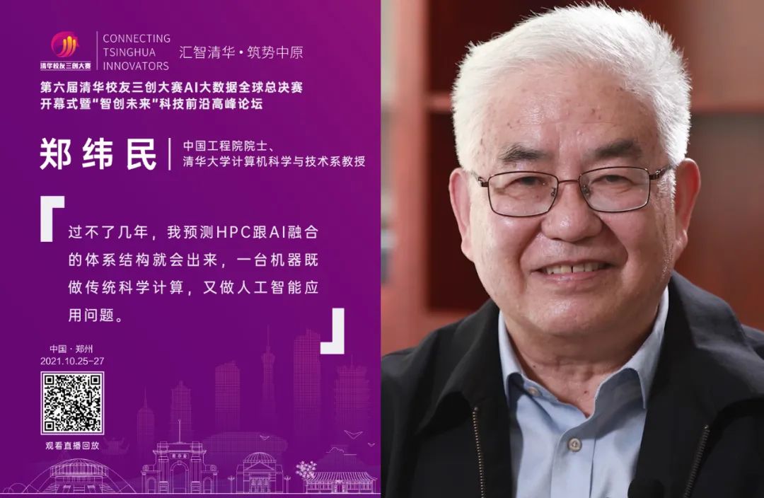 10月25日至27日,第六届清华校友三创大赛AI大数据全球总决赛在郑州举行。在26日上午的开幕式暨“智创未来”科技前沿高峰论坛上,中国工程院院士、清华大学计算机科学与技术系教授郑纬民在线上分享了关于“AI 和 HPC 融合的高性能计算机体系结构”主题报告。本文经整理及本人确认发布。