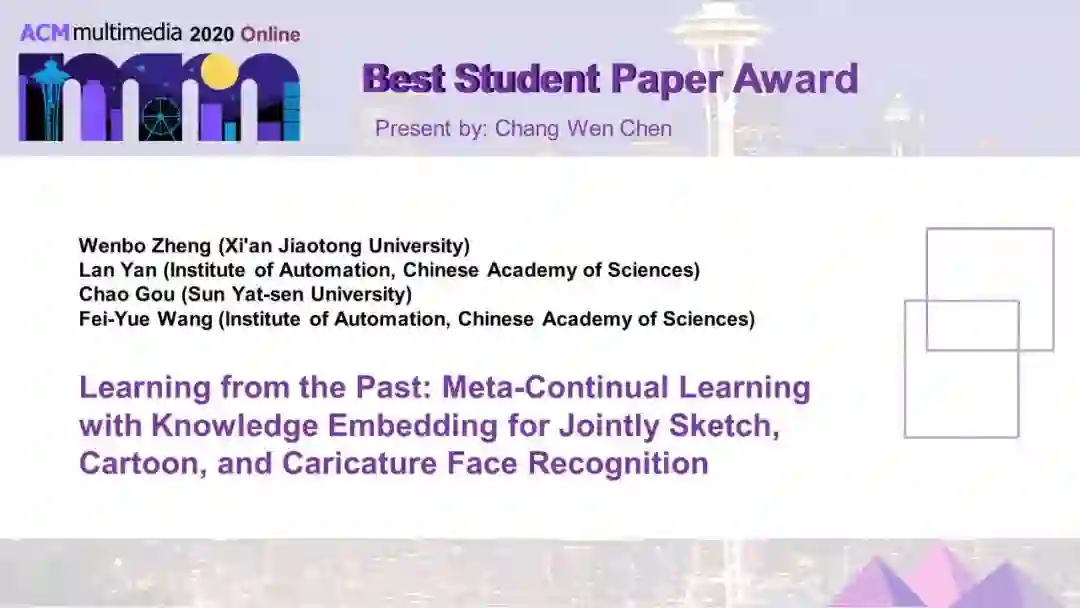 我们提出了一种新的基于知识嵌入的元持续学习框架,用来解决素描、卡通和漫画人脸联合识别的任务。
