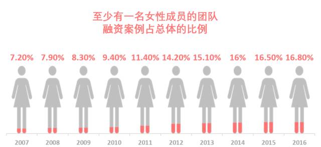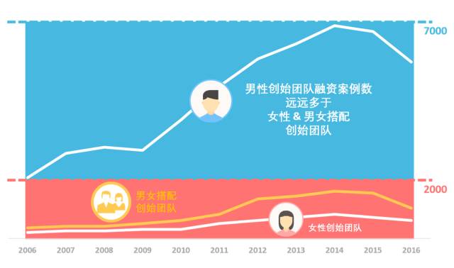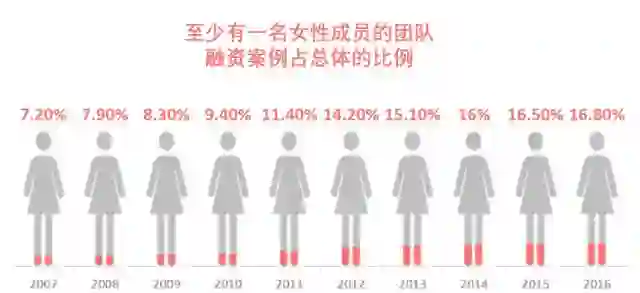 2016年,VC投资创始团队全部为男性的案例高达5839家,而仅有359家女性创始公司拿到VC投资。