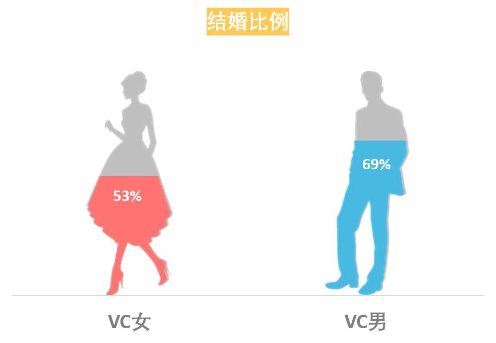 她们顶着高压工作,1天24小时嫌不够,节假日加班加点是正常。她们当中,很少有人能够真正的事业、生活双丰收。实际上,数据显示,VC界女性员工的结婚比例为53%,低于男性的69%!