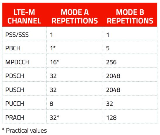 ▲eMTC的不同信道在Mode A和Mode B下的最大重传次数