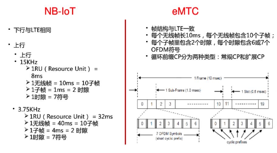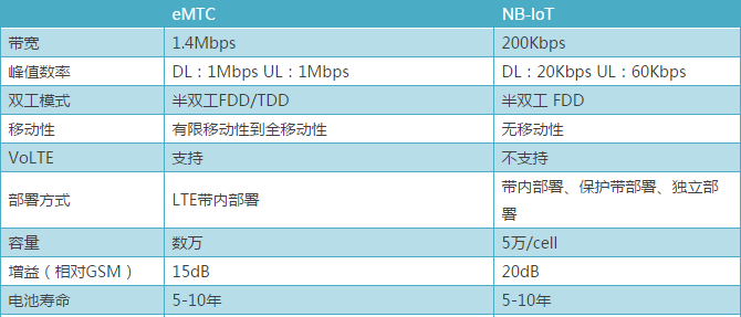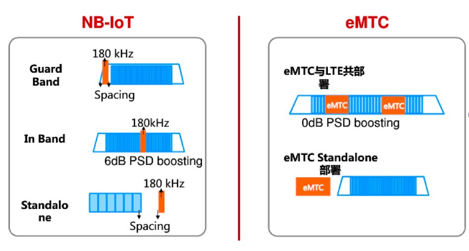 为了满足“3C”目标,NB-IoT和eMTC的实现方式也有不同之处,具体如下: