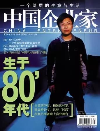 这篇报道的影响力却远远超乎茅侃侃的想象。在《中企》总编辑牛文文老师的运作下,杂志将对茅侃侃、李想、郑立、戴志康等人采访做了一个封面专题,冠名“生于80年代”,引发了全国性的轰动。