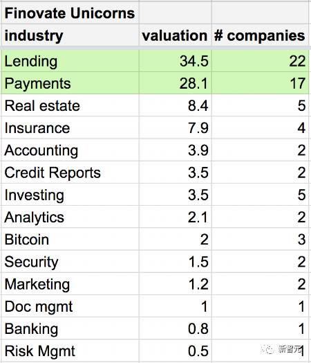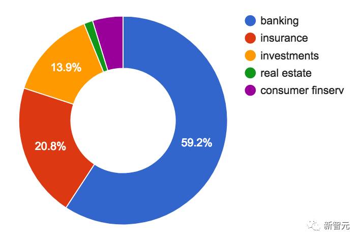如果看 Fintech 独角兽同期集群,可以发现大部分都是发生在贷款和支付领域,而这在历史上属于传统的银行业务。在公开市场上,保险大约是银行业务的 1/3,但在独角兽榜上,这个数字变成了 1/5。