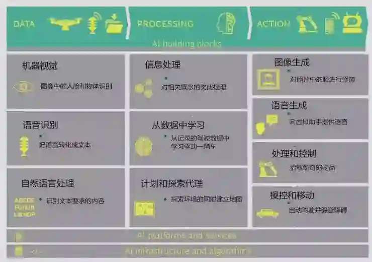 企业也可以访问我们所说的人工智能构造块。这些构造块,如机器视觉,比裸算法更实用,但并不是完全自主操作的。人工智能的每一个用途都依赖于一个或多个构建块,每个构造快都依赖于算法、API和预先训练的数据集。在研究和经验的基础上,我们确定了10个正在快速发展的建筑板块。管理人员需要了解这些构造块的功能和潜在价值。有些事情在今天艰难但可行,未来几年内可能变得很容易,而今天不可能的事在三到五年内也可能会得到实现。