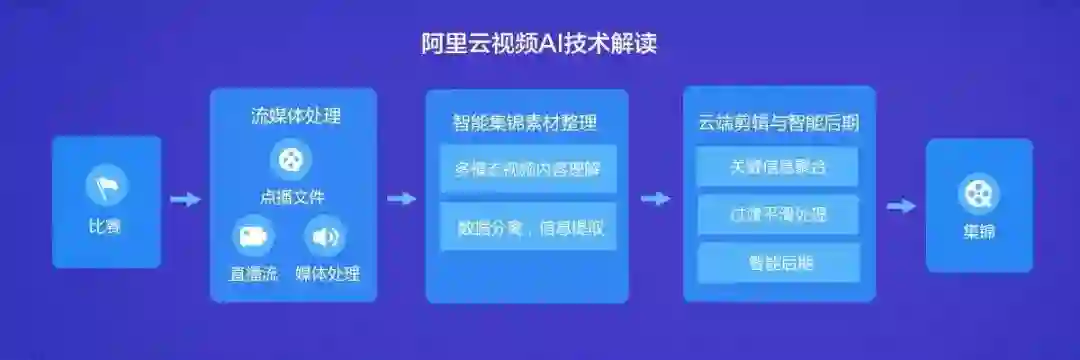 阿里云的视频AI可实现对第一脚传球检测、回放检测、危险射门检测、犯规检测、运动轨迹分析及进攻节奏分析等,最终在云端快速剪辑,精彩集锦几分钟就能出炉。