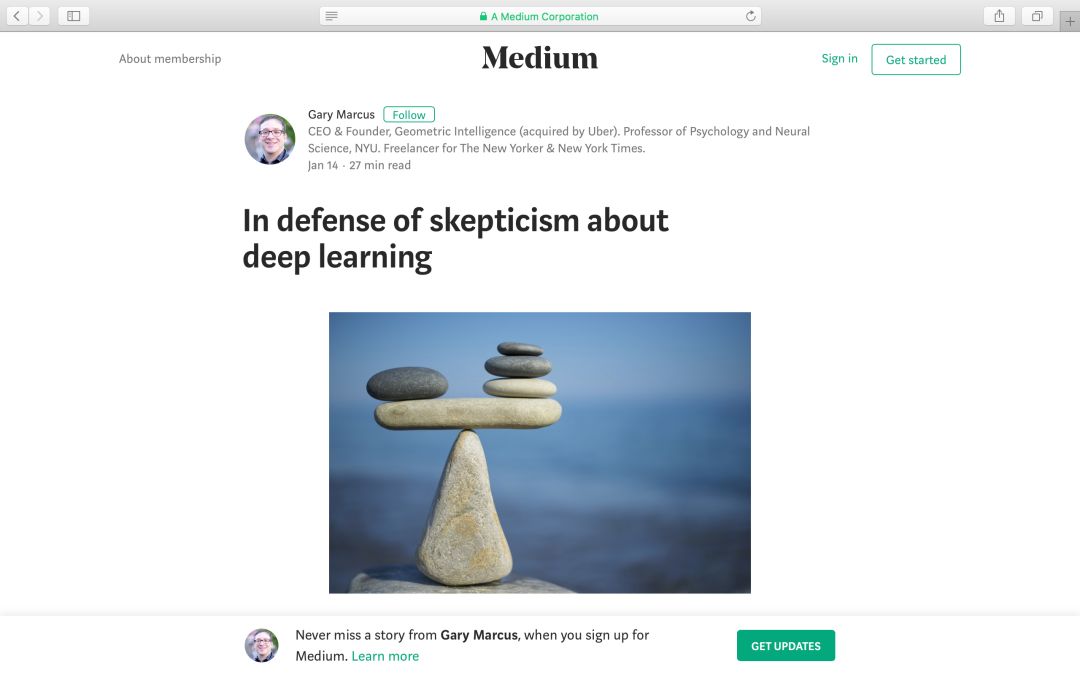 《为深度学习的质疑声辩护》(https://medium.com/@GaryMarcus/in-defense-of-skepticism-about-deep-learning-6e8bfd5ae0f1)