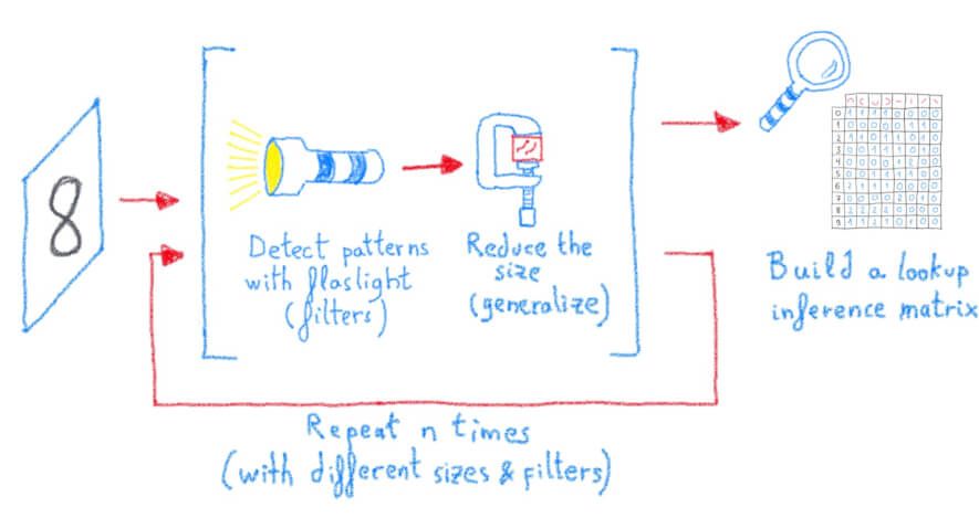 这就像创建新的抽象层以获得更清晰的对象过滤器描述,从原始过滤器到看起来像边缘、轮子、正方形、立方体等的过滤器......