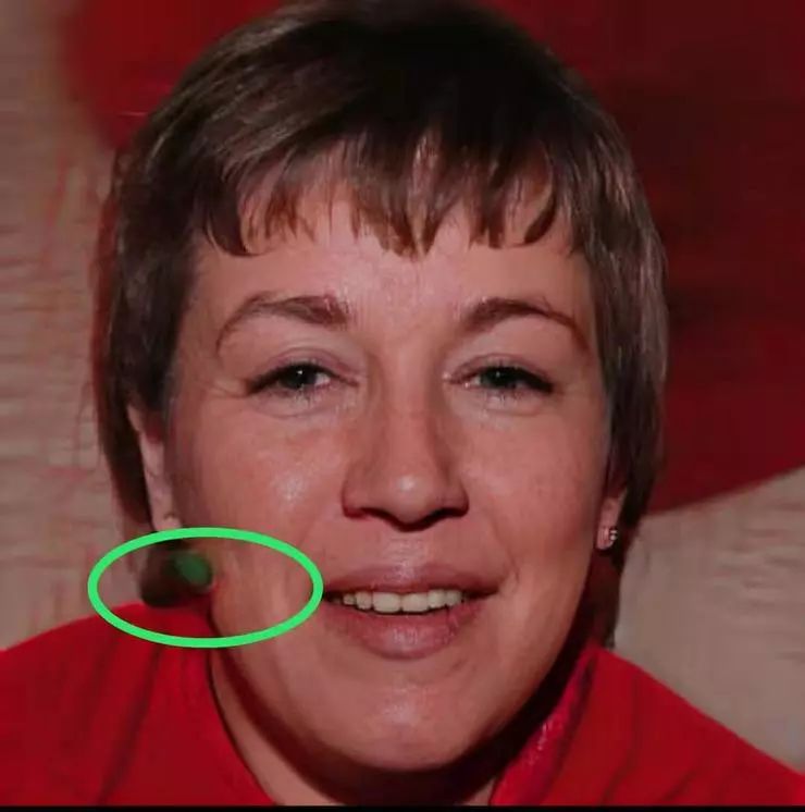 (绿色圆圈处的面部,呈现不明物质的绿色“缺陷”)