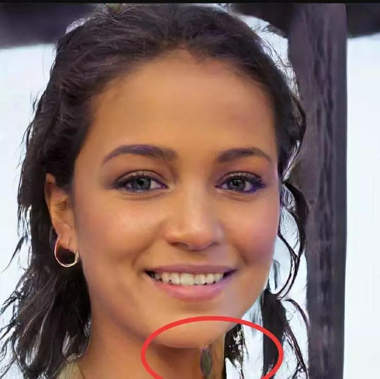 (注意美女脖子下方红圈处的疤痕,看着像“外星人”留下的痕迹)