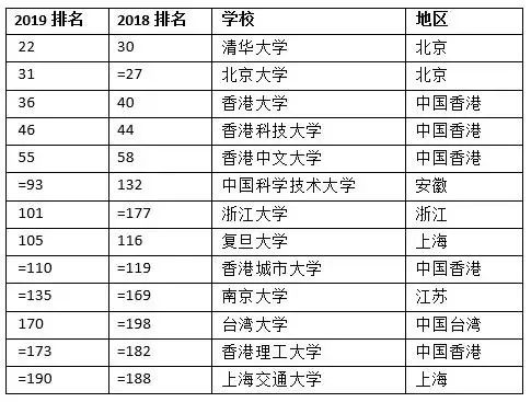 整体的高校分布来看,美国仍然是排行榜上入围高校数量最多的国家,入围高校数量从157所增加到172所。中国是亚洲高校中,入围数量最多的国家,从去年的63所高校增加到今年的72所高校,其中,有7所高校入围了前200名。值得一提的是,清华大学从去年的30名上升至第22名,并首次在全球排名中超越北京大学成为中国大陆新的第一名,北京大学下降四名,位列第31名。
