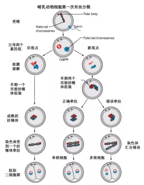 哺乳动物受精卵有丝分裂的新旧观点。(来源:Science)