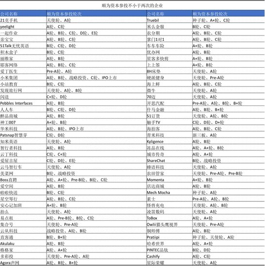 以下这些企业都曾获得了顺为资本不少于两次的投资: