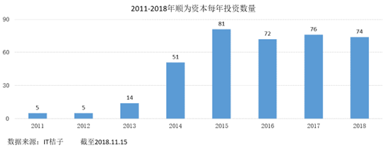 截至 11 月 15 日,2018年顺为资本一共完成了 74 起对外投资。