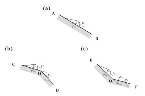 三种转折形态下的侵蚀机理示意图