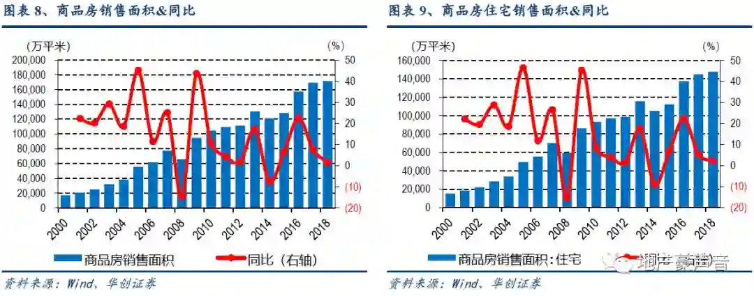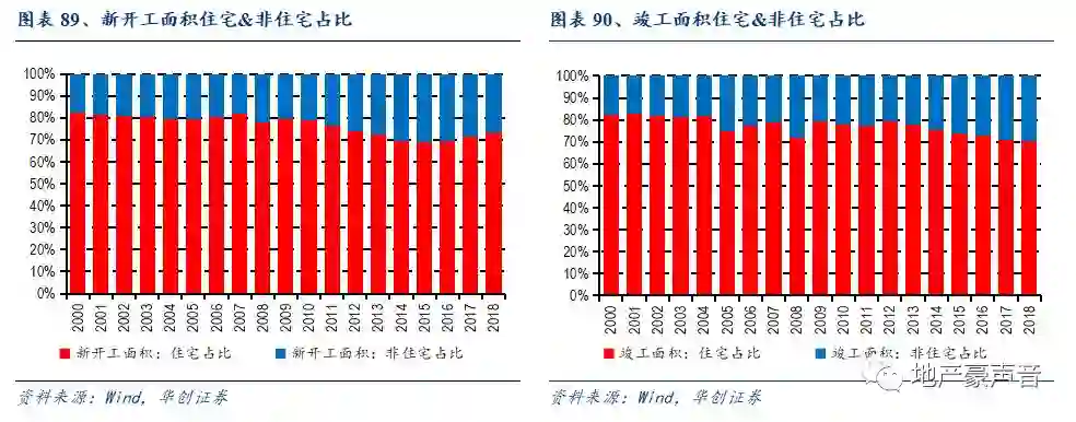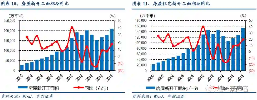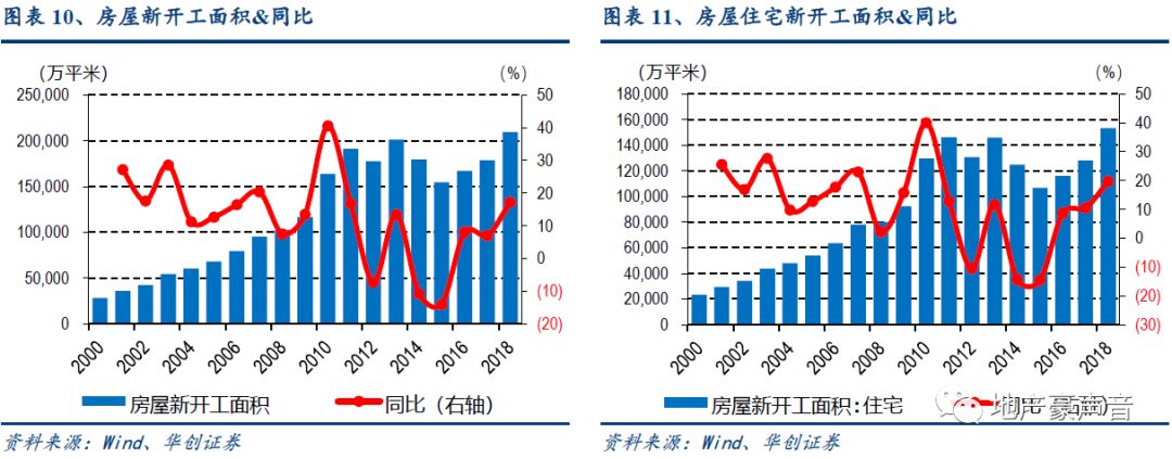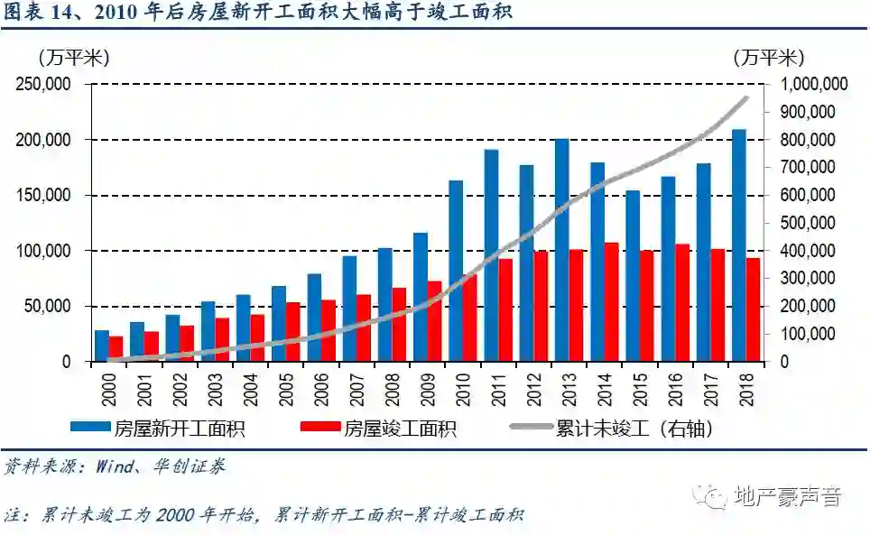 另外,自2000年起,我们用房屋累计新开工面积减去累计竣工面积,得到的累计未竣工面积快速提升,预示着行后续竣工面积以及管理面积将快速提升。(注:虽然统计局竣工面积的数据质量存疑,导致了累计未竣工面积的数据质量也不高,但近2-3年销售面积高增经过2-3年时间传到竣工面积同比加速也相对合理)