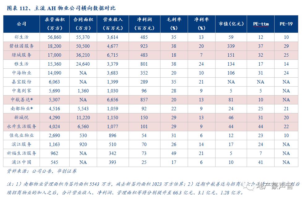 4)商办型物业管理公司:例如中航善达,主营物业资产管理和商业物业资产的投资与经营,公司目前管理面积5,307万方。此外,中航善达于4月28日发布公告,公司拟以发行股份的方式购买招商蛇口、深圳招商地产合计持有的招商物业100%股权。交易完成以后,公司的控股股东预计变更为招商蛇口,实际控制人预计变更为招商局集团,但最终控制人仍为国务院国资委。此前,公司股东中航国际控股与招商蛇口签署了《股份转让协议》,约定向招商蛇口转让所持公司22.35%股权。考虑到国内专注中高端商办类型物业管理的上市公司稀缺,且拟收购招商物业,后者目前服务面积达7,500万方,且背靠招商局集团,若收购成功将使中航善达得以价值重估,公司值得关注。