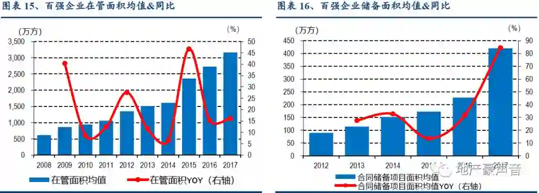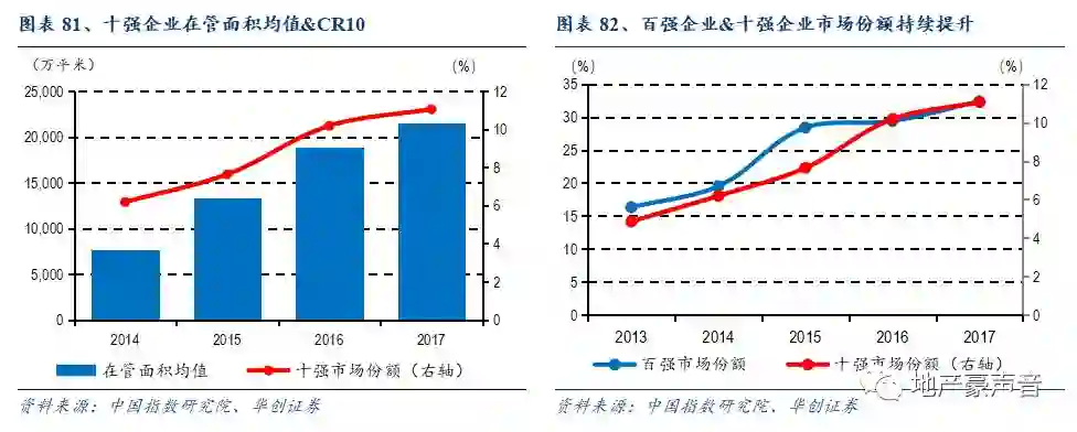 2、百强企业管理规模持续提升,行业集中度快速提升,规模扩张同时伴随城市深耕