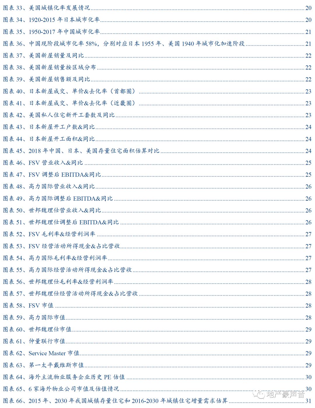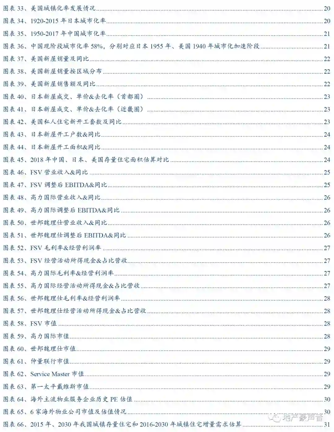 从存量对比来看,估算2018年我国存量住宅面积253亿平米(参见后文第三章测算),对应美国、日本存量住宅居住面积分别约为148亿平米、45亿平米,目前我国存量市场分别是美日的1.7倍和5.6倍。考虑到美日已处于城镇化率相对稳定阶段,而我国目前城镇化率和人均居住面积仍具有较大提升空间,国内物管行业不仅存量空间高于美日,并在行业增速上(新房成交、新开工体量)远高于美日,因此我国物管行业较国际对比空间更为广阔,预计2030年我国存量住宅面积将达355亿平米(参见后文第三章测算),届时我国存量市场分别将是美日的2.4倍和7.9倍。