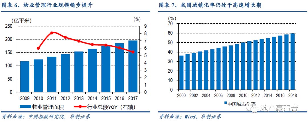 1、行业仍处于成长期,在管面积稳步增长,城镇化率仍处于快速增长阶段