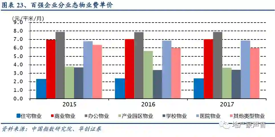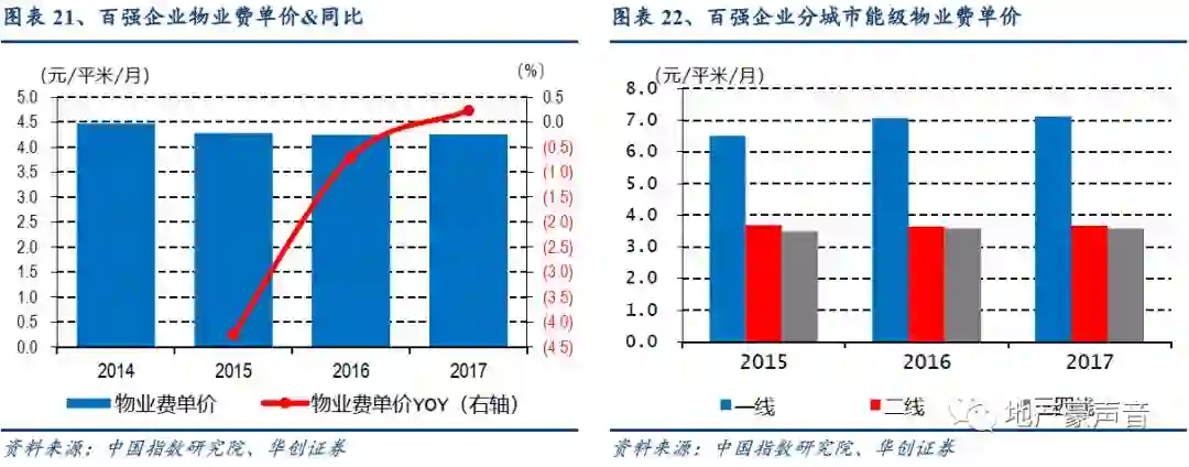 4、物业费单价提升较慢、一线显著高于二三四线、商办物业显著高于住宅物业