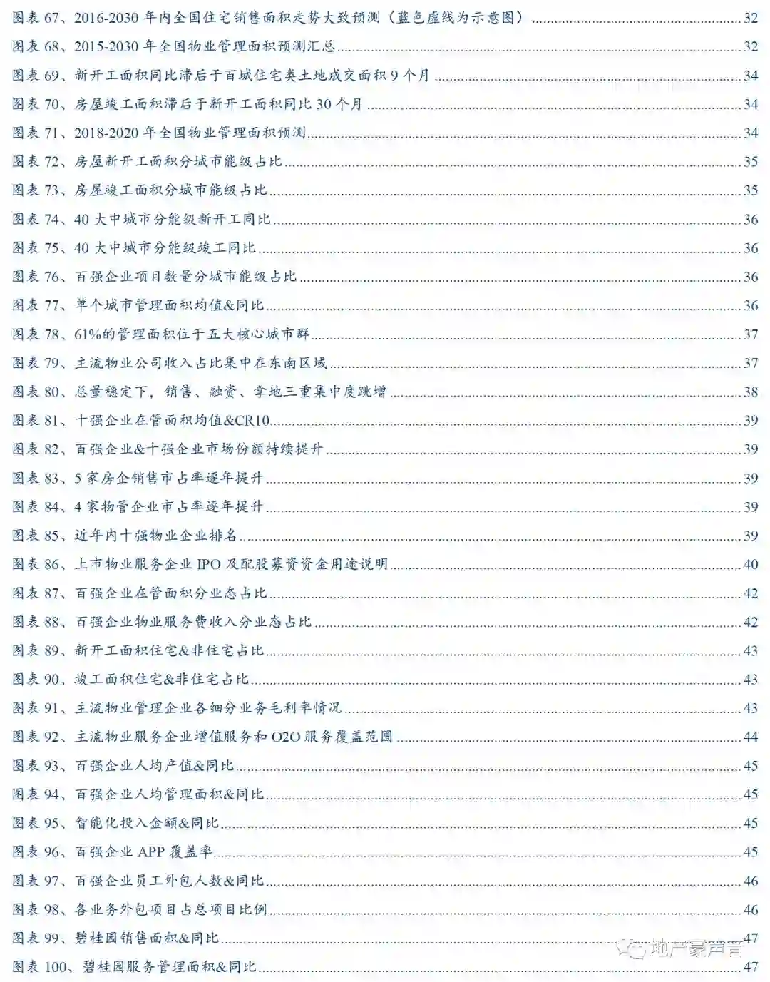 我国物管行业将是一个规模大、增速高的蓝海市场,预计2030年末行业总量空间达318亿平(预计较美日比值将高达2倍和8倍)、对应收入规模2万亿元,较17末分别增长64%、98%,并且预计近年来将进入规模爆发期,主要基于:1)城镇化率和人均居住面积提升等因素推动中期住宅增量需求中枢稳定为13亿平米;2)销售-新开工-竣工的3年传导规律下16-18年销售高峰传导至19-21年竣工加速;3)目前低能级城市、中西部发展不均衡,后续渗透率有望提升至89%;4)预计监管市场化后新交付物业单价年均涨幅约2%。