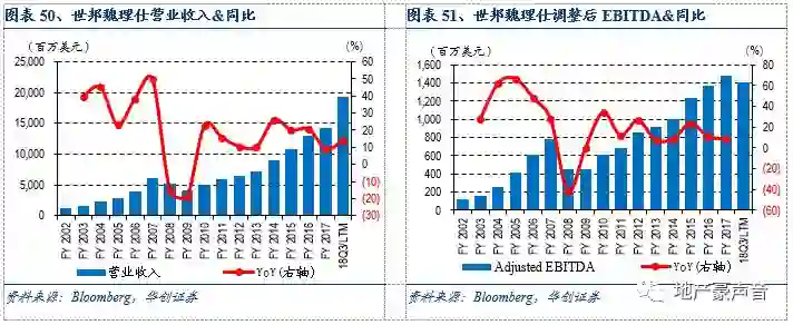 3)世邦魏理仕:擅长商业咨询业务,02-17年营收CAGR 18%,保持15年持续稳定增长