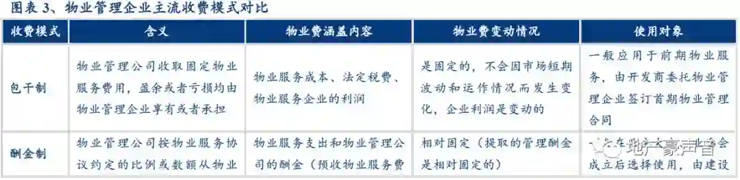 1、收费模式:包干制收取固定费用,酬金制收取固定比率费用,目前包干制占市场主流