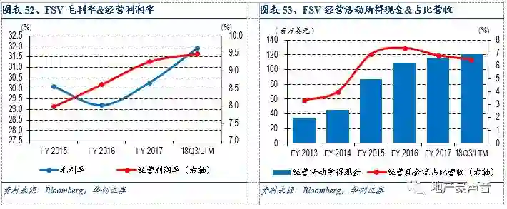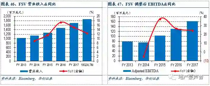 截至2017年,公司员工总数达19,000人,营业收入达17.1亿美元,同比增长15.0%。其中,营业收入的94%来自于美国,6%来自于加拿大。1995年至2017年,公司营业收入CAGR达19%,超过20年保持持续稳定的增长。2017年,FSV调整后EBITDA为1.62亿美元,同比增长24.3%,经营利润率达9.3%,较2016年+0.7pct,经营能力稳健。
