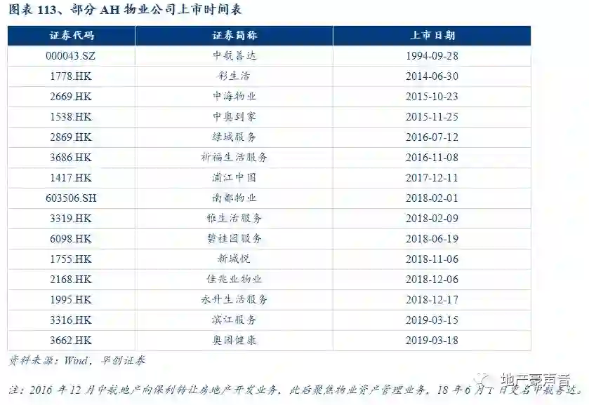 主流AH物业管理公司主要包括背靠开发企业型、优质标杆服务型、收并购型以及商办类型的几种公司。