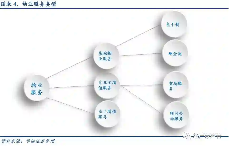 2、服务类型:物业服务包含基础服务和增值服务,增值服务分为非业主增值服务、业主增值服务