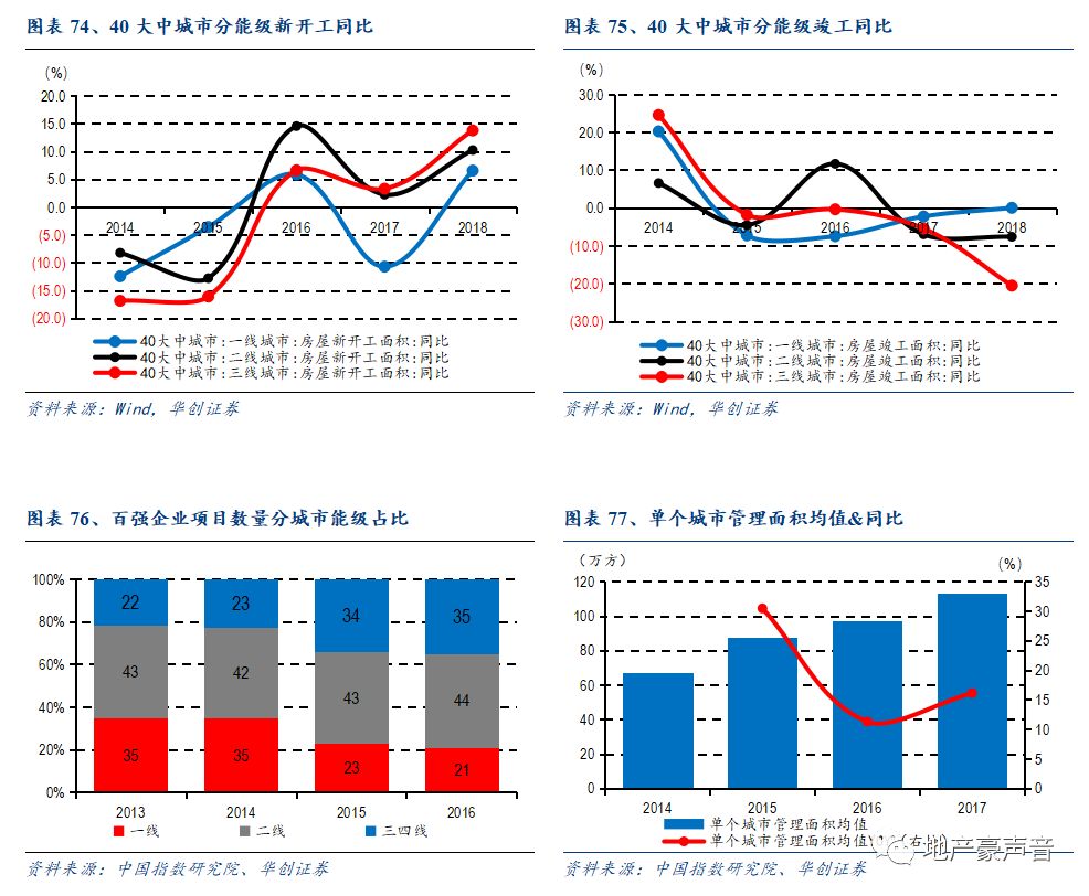3、多种业态全面发展、其中住宅占比七成,管理城市能级由一二线逐步向三四线下沉