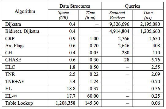 表 1:西欧的路线规划技术的表现 [BAS15]