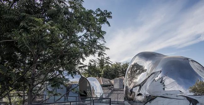 这些作品被称为“大师院”。打磨场218号(西打磨厂街218号)民国时期是家医院。建筑师马岩松和他的MAD建筑事务所在里面实施了大胆的构想:在四合院原有的结构和低矮尺度里挤进大大小小几个银色泡泡,不规则形状,外表光洁如水银,内部空间则不影响正常使用。现在这里是一家名为“和院”的高新科技交流互动平台。