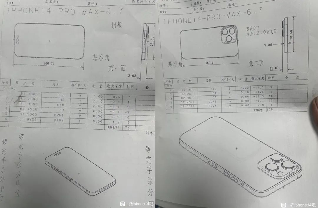 日前,新 iPhone 里最贵的型号——iPhone 14 Pro Max,其设计图已经在贴吧流出,推测是为自手机配件开模的设计图。