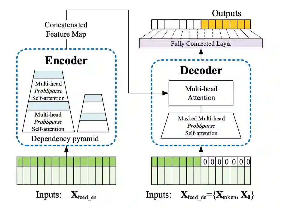 2)自注意力蒸馏通过将级联层输入减半来突出注意力,并且能够高效地处理极长的输入序列;