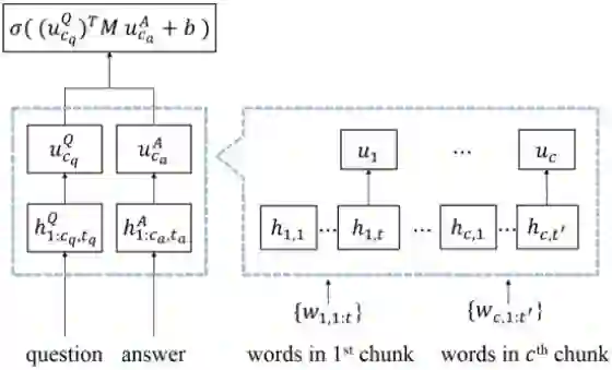 在商业领域,通常通过使用预先组织的知识库和/或使用基于信息检索(IR)的方法来处理QA任务。而在学界,研究人员不断研究QA系统核心技术:问答对排序任务。排序任务是指,从知识库或基于检索的模块中选择候选回答中的最佳答案。有许多端到端的神经网络试图来解决这一任务。这些作品侧重于匹配句子级别的文本对。因此,他们在理解更长的文本(如多回合对话和解释性文档)方面存在局限性,文本变长时,排序性能随之下降。为了解决这个问题,这篇文章的创新点在于: